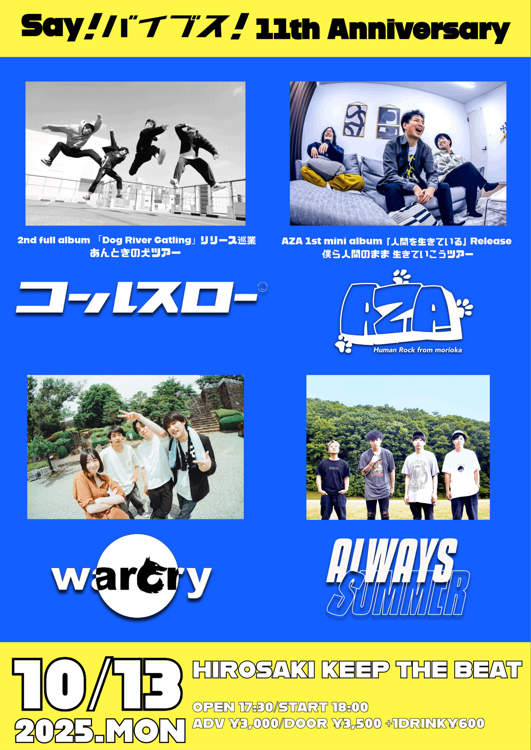 コールスロー 2nd full album 「Dog River Gatling」リリース巡業『あんときの犬ツアー』×Say!バイブス!11th Anniversary