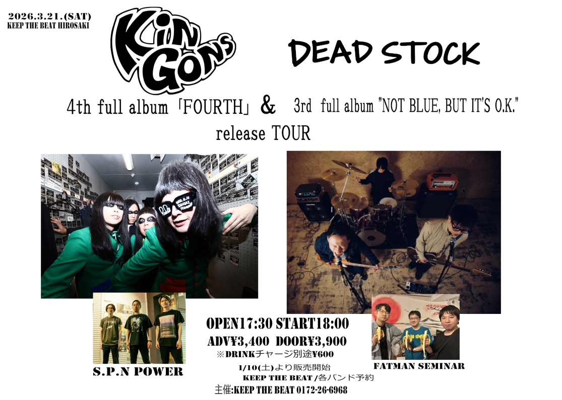 KiNGONS 4th full album 「FOURTH」& DEAD STOCK 3RD ALBUM “NOT BLUE, BUT IT’S O.K.” release tour