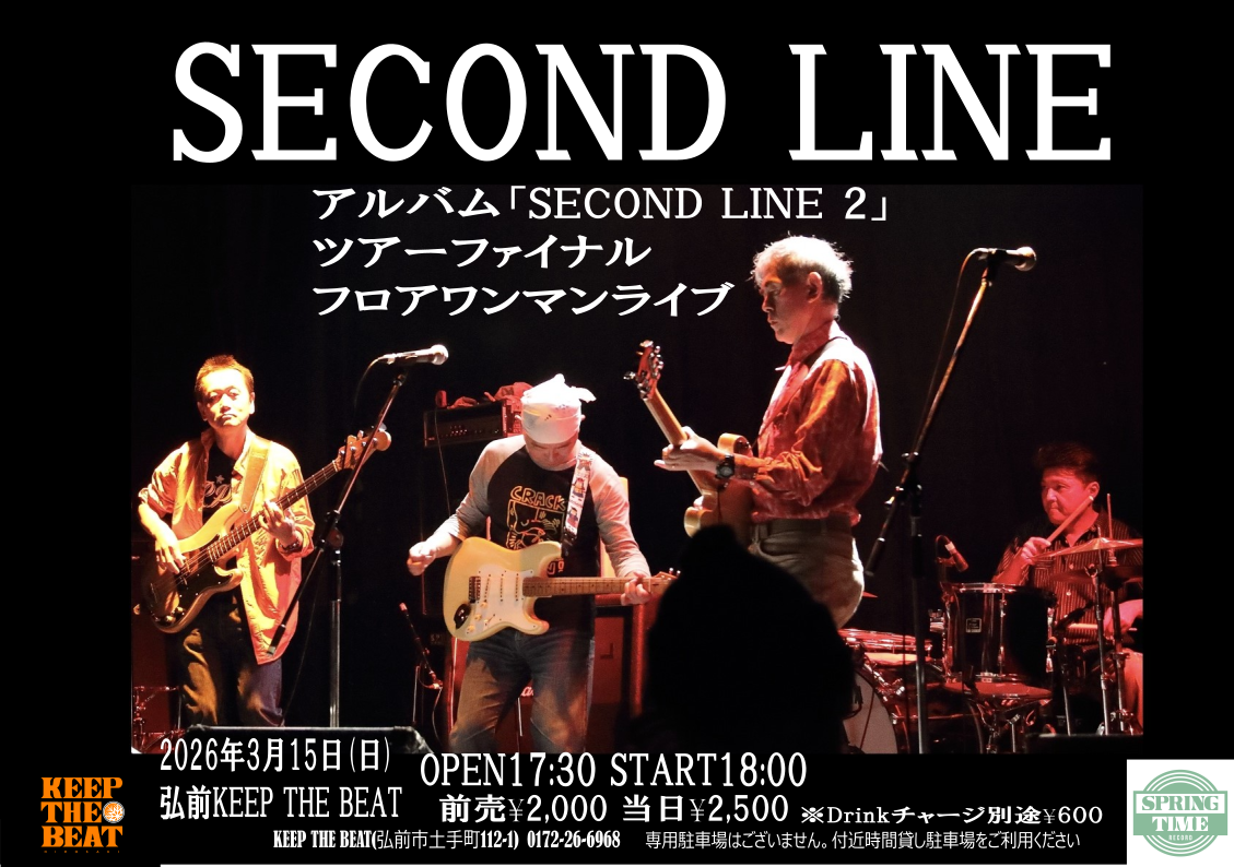 SECOND LINE 2nd アルバムツアーファイナル フロアワンマンライブ open17:30 start18:00 前売¥2,000 当日¥2,500 ※ドリンクチャージとして別途¥600 チケット取り扱い:KEEP THE BEAT Date 2026 / 03/ 15 Time 18:00 Category LIVE PICK UP